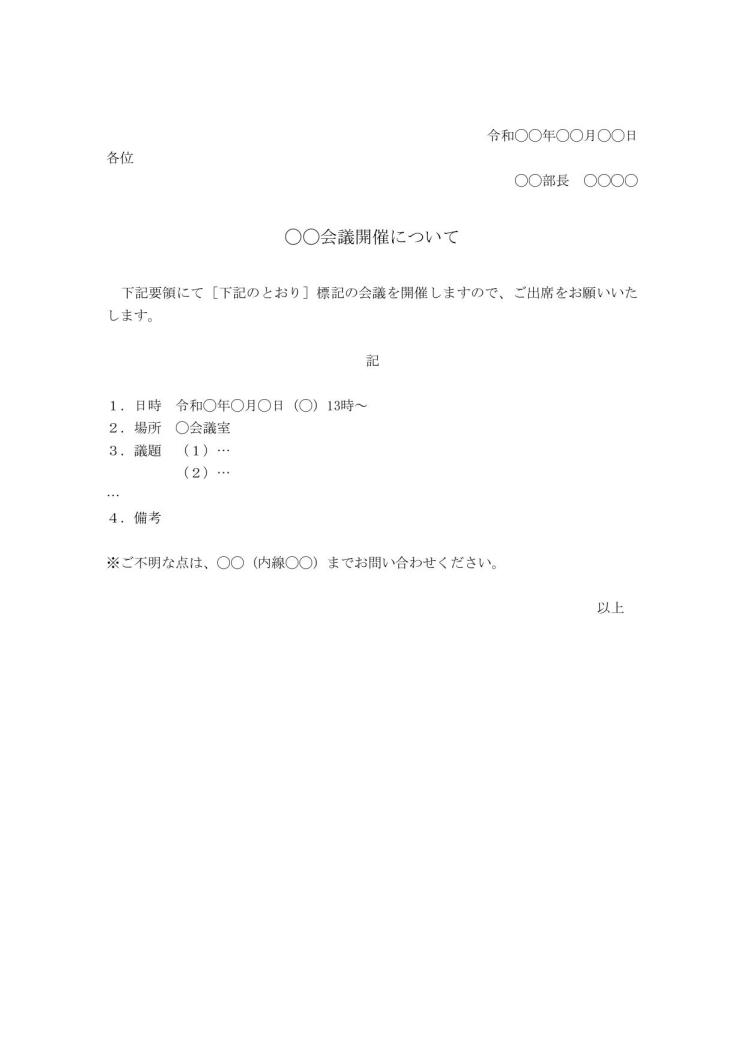テンプレート付き社内連絡文書 お知らせ文書 の書き方や例文を紹介。