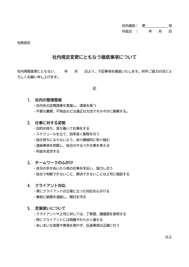 従業員へのお知らせ・社内通知文例集テンプレートと書き方のポイントBizroute。