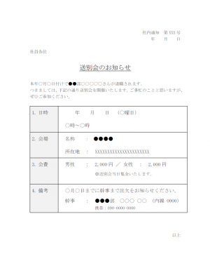 社内通知書テンプレート12「○○会開催のお知らせ_テキスト形式」 ワード・Word 無料ダウンロードテンプレートNAVI。