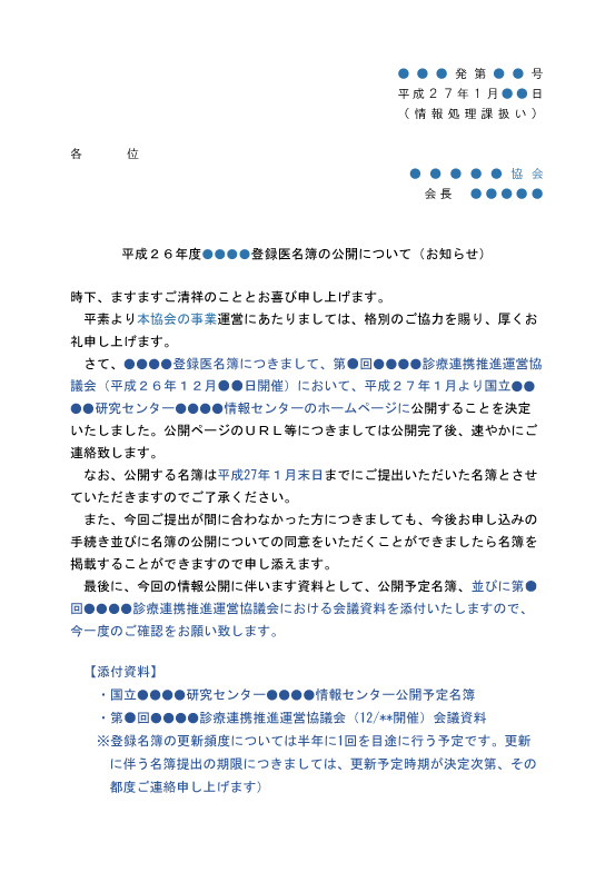 通知状通知文、関係者への事前説明・周知、事業開始、新制度発足等ビジネス文書クリップ。