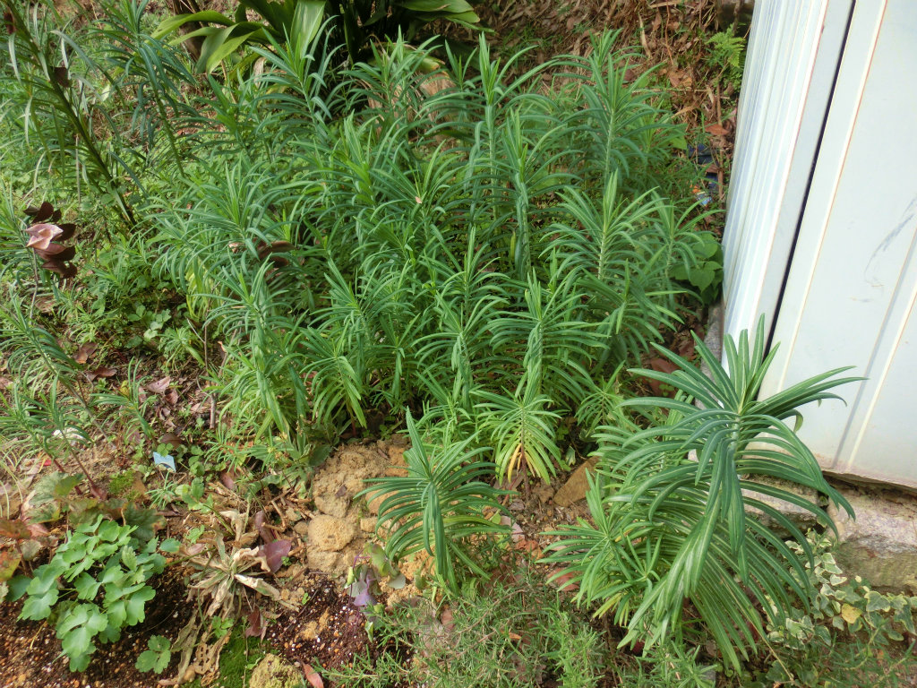 ユーフォルビア・ラシリスの育て方。 和名・ホルトソウ。こぼれ種で場所を選ばずかなり群生します。 - ショウタロウブログ。