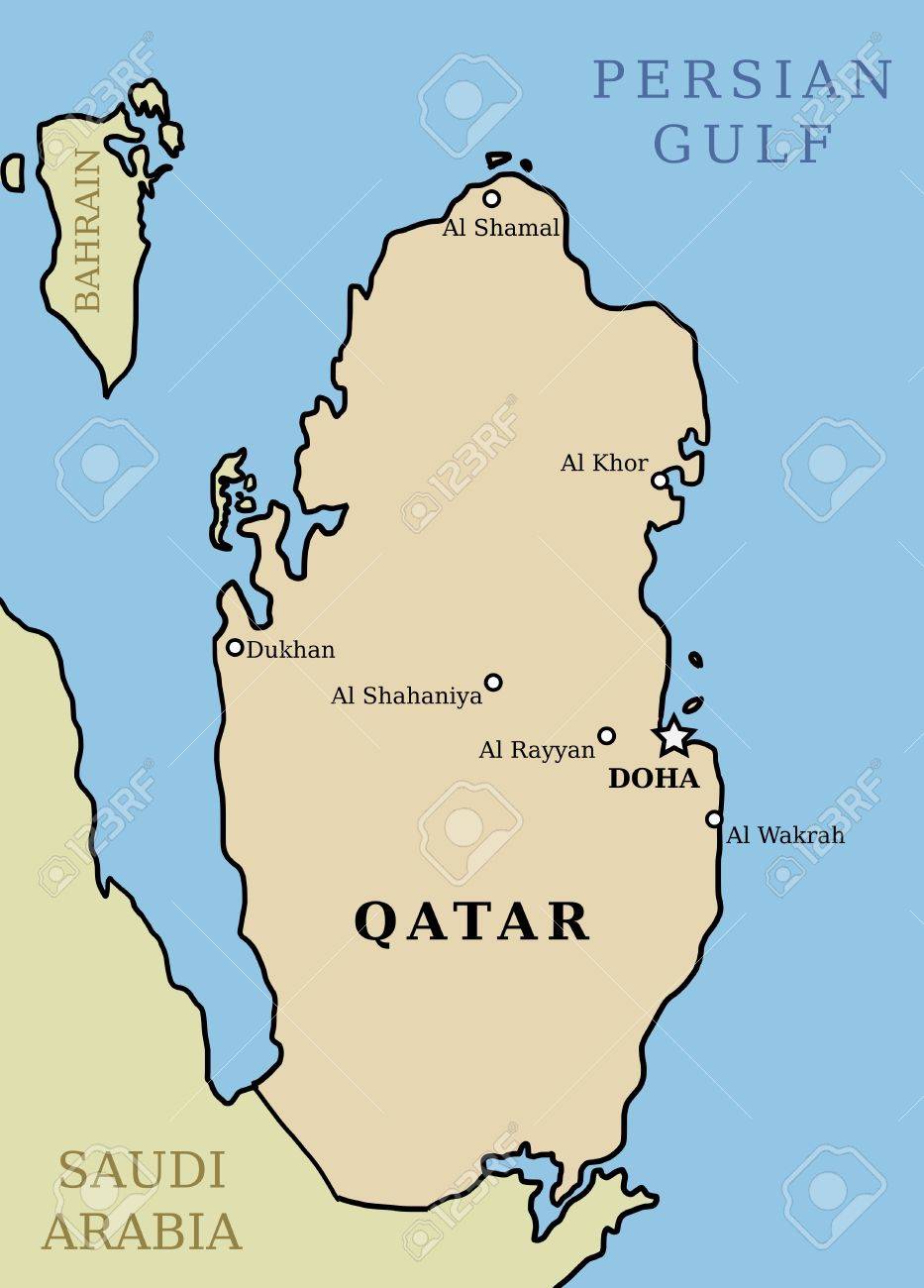 カタールの地図。主な都市と概要図国の地図。のイラスト素材・ベクター Image 81570356。