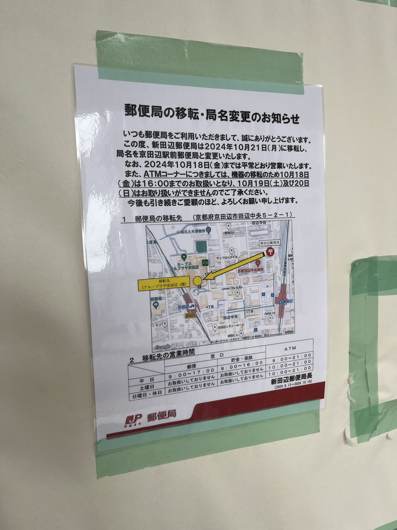開局まぁ速報 10月21日開局の京田辺駅前郵便局に行ってきた話 - そてつ 旅行ブログ。