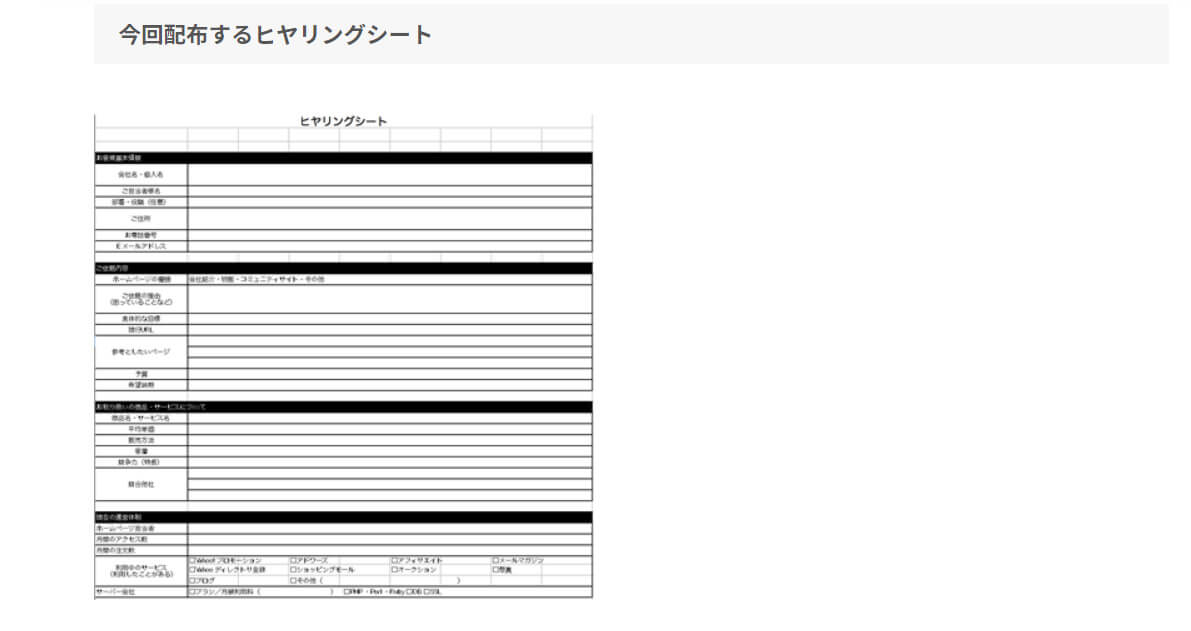 買反響ヒアリングシートを無料ダウンロードミカタストア。