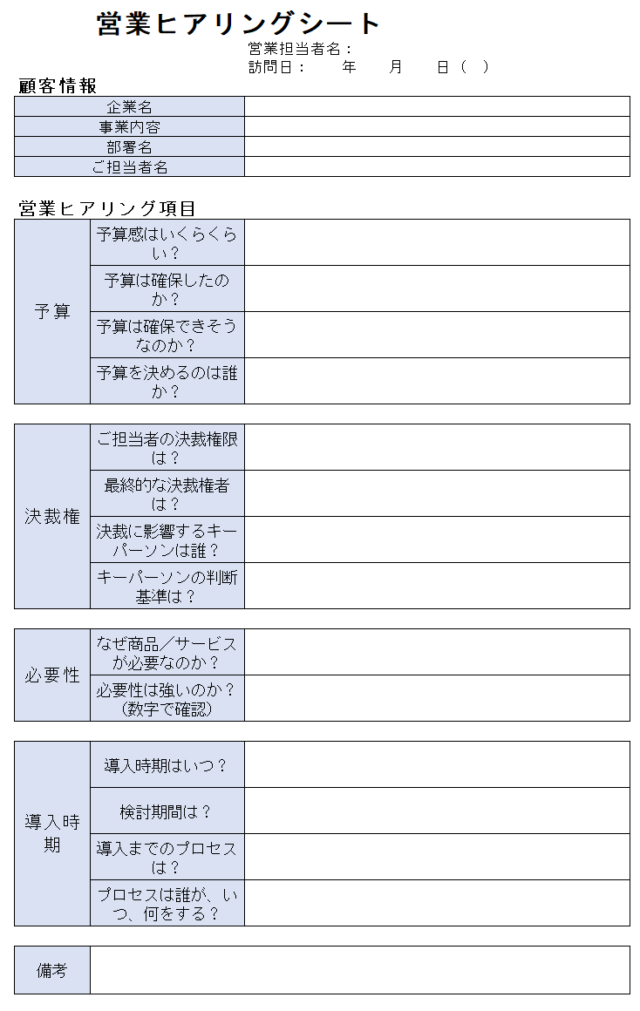 営業の初訪問のヒアリング項目はこれだ!質問方法やヒアリングシートの作り方・テンプレートをご紹介営業・マーケティング支援。