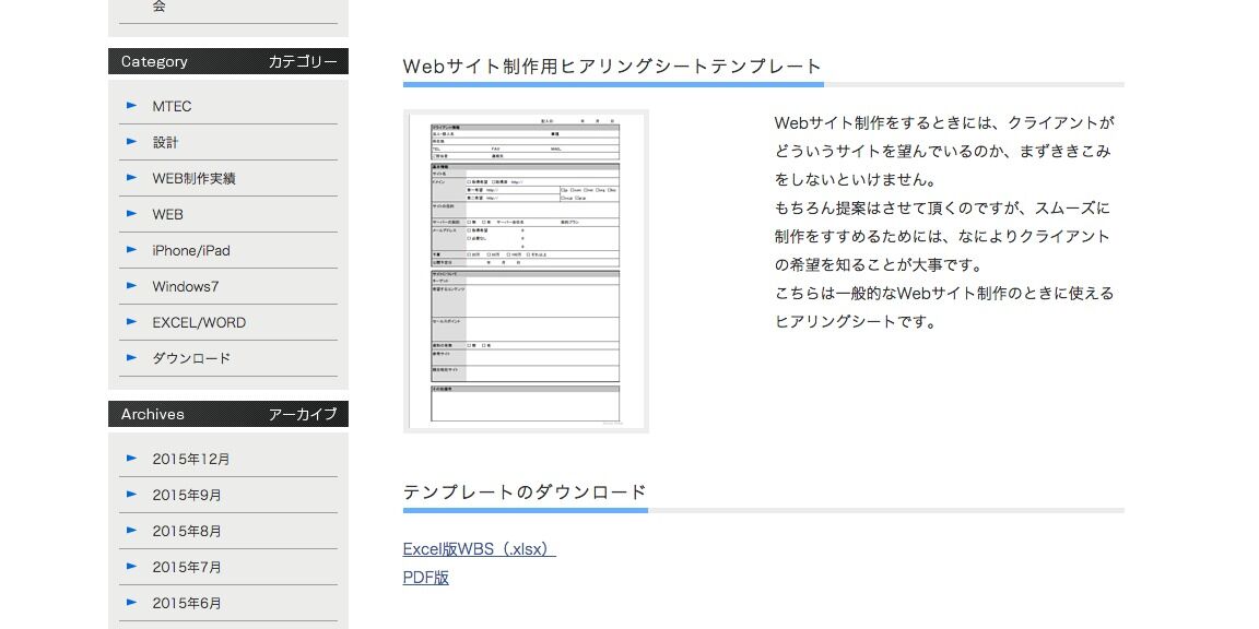 WEB制作ヒアリングシート公開Portfolio of Naoki Yoshizawa。