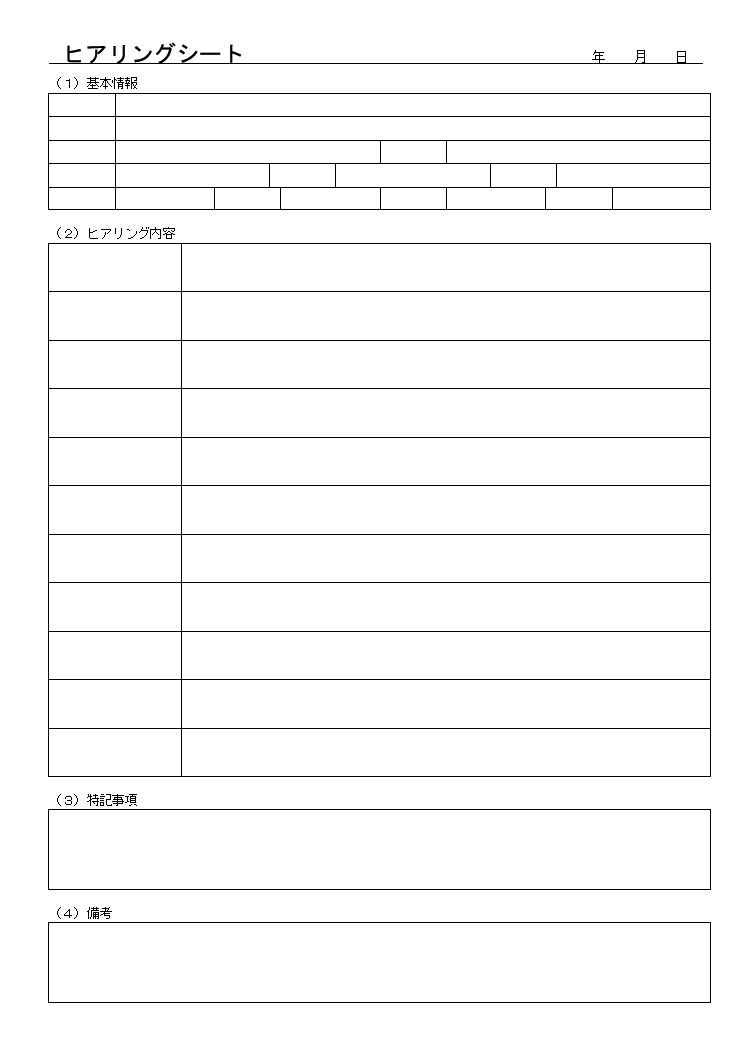 ヒアリングシートの書き方・作り方 書式・様式・フォーマット 雛形 ひな形テンプレート 無料汎用的 02 ワード Word一覧表形式-文書 テンプレートの無料ダウンロード。