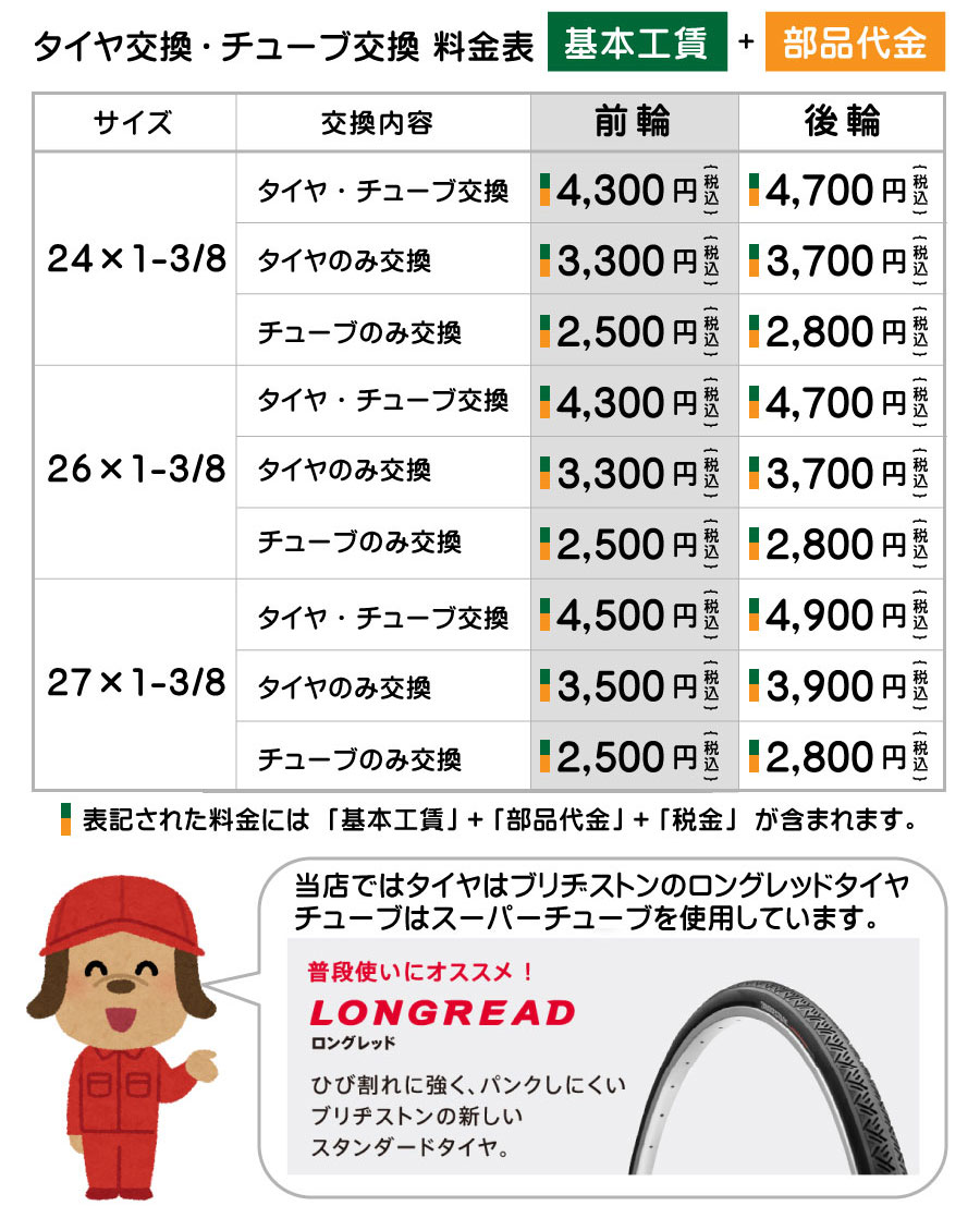 自転車のタイヤ交換 工賃や料金がてんでバラバラな訳B4C。