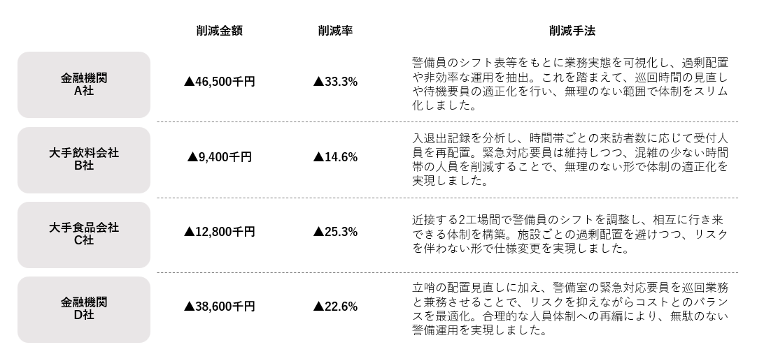 ご提案・経費削減事例警備と施設管理のユニティガードシステム。