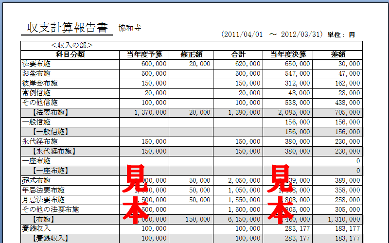収支予算書 増減計算方式- Kodo。