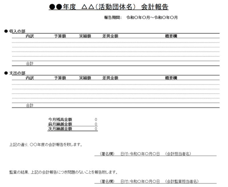 収支報告書 収支決算書・収支決算報告書 ・会計報告書の書き方・作り方 書式・様式・フォーマット 雛形 ひな形 ・見本・サンプルテンプレート 無料 06 社内・町内会・自治会その他一般エクセル Excel-文書 テンプレートの無料ダウンロード。