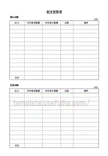 収支決算書 - テンプレート。