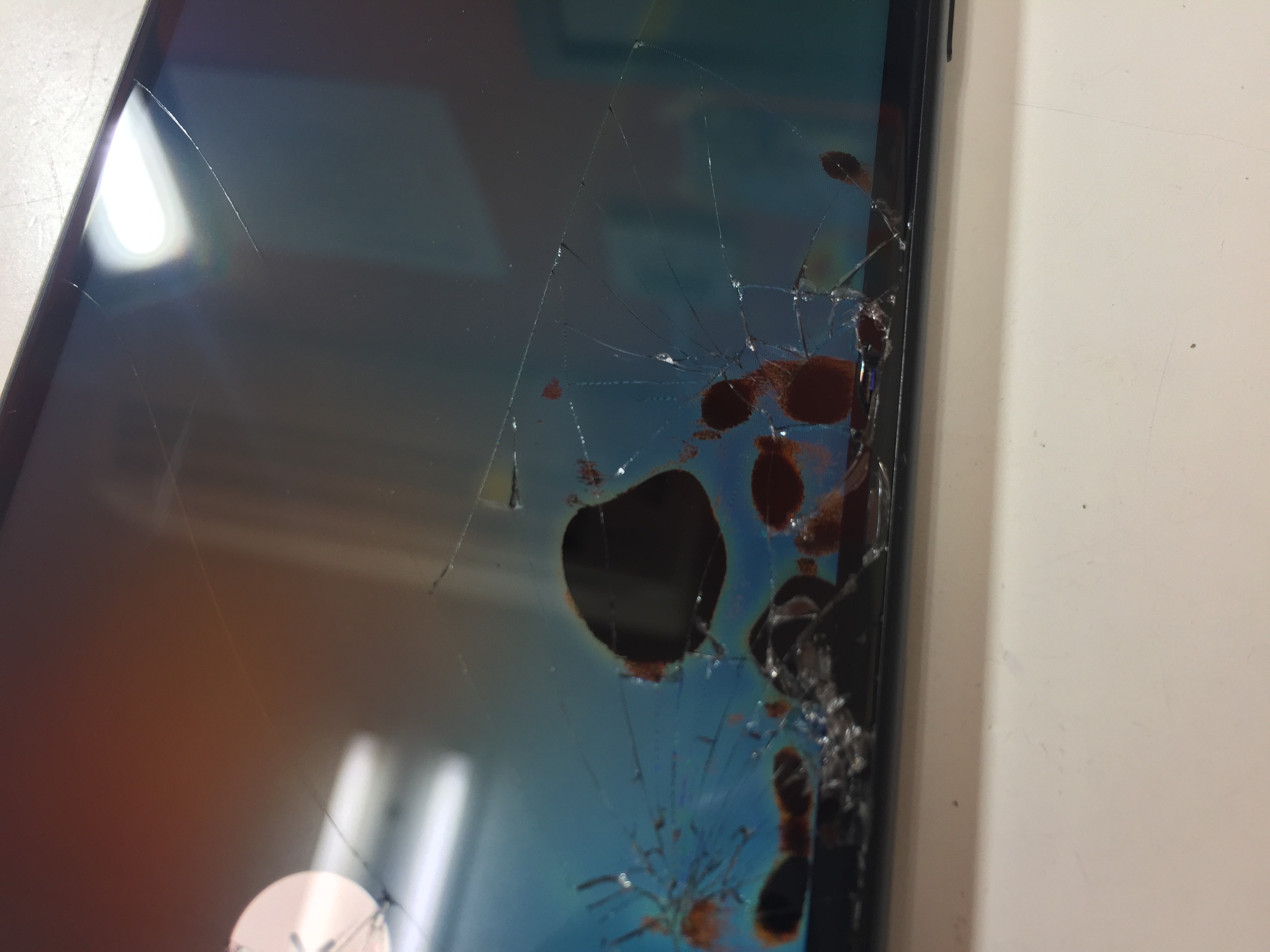 iphone画面割れ どれだけ酷い状態 ガラス割れ・液晶漏れ、車に轢かれた でも直すことは出来ますスマホ・iphone修理のスマホスピタル。