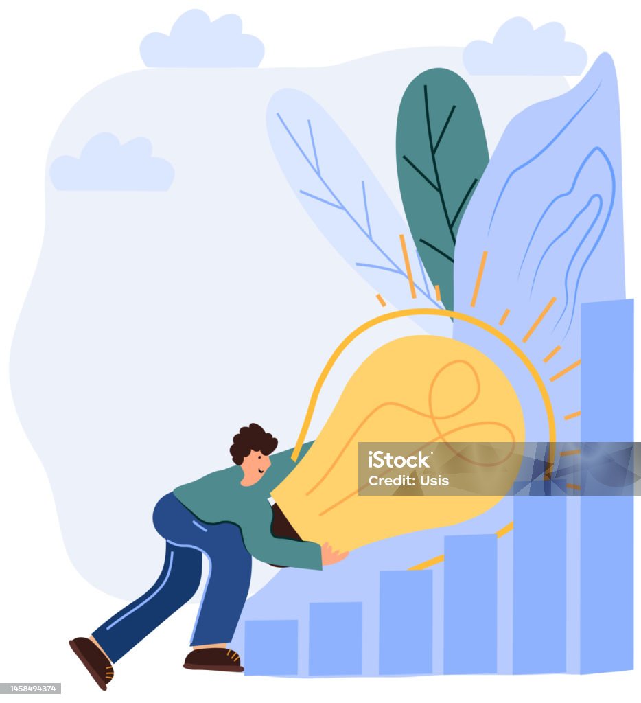 ビジネスアイデアを作成中の男性解決策を見つけ目標を達成することの象徴としての電球ビジネスの概念アイデアの発見理解ベクターイラスト -ひらめきのベクターアート素材や画像を多数ご用意 - iStock。