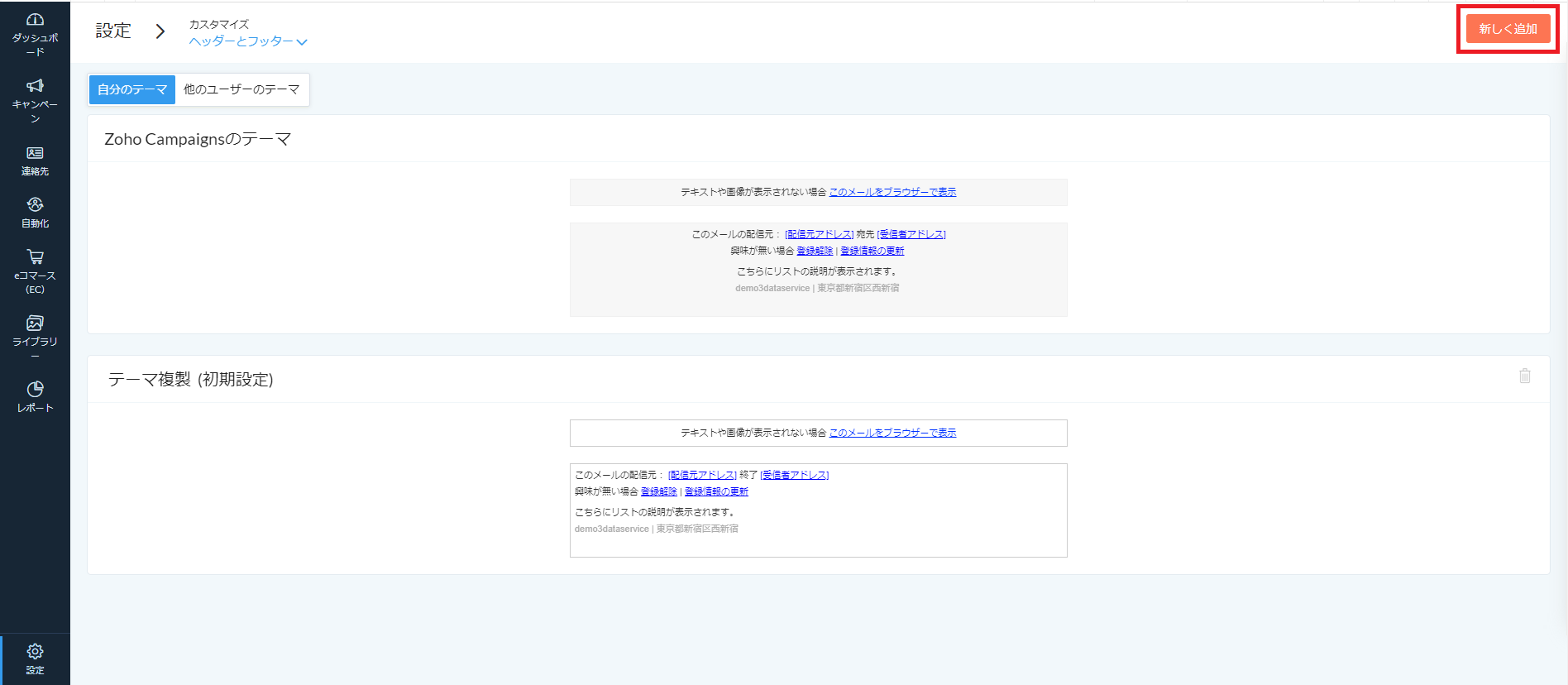 Zoho Campaigns キャンペーンメールにヘッター・フッターを作成したい。