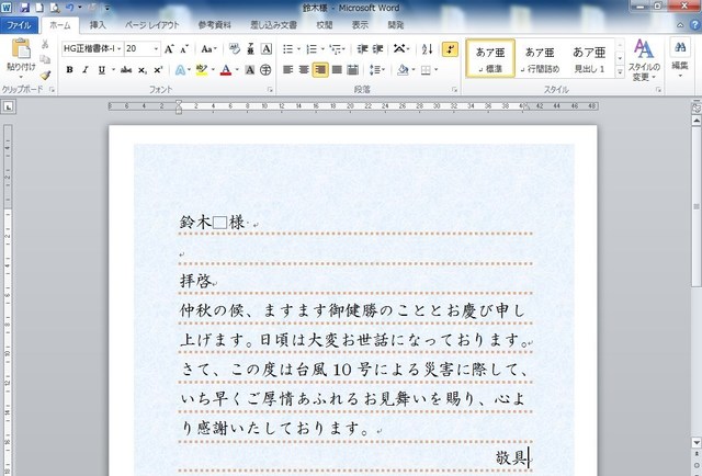 ヘッダー、フッターに図形を入れて便箋を作成: 福生のパソコン教室のブログ。