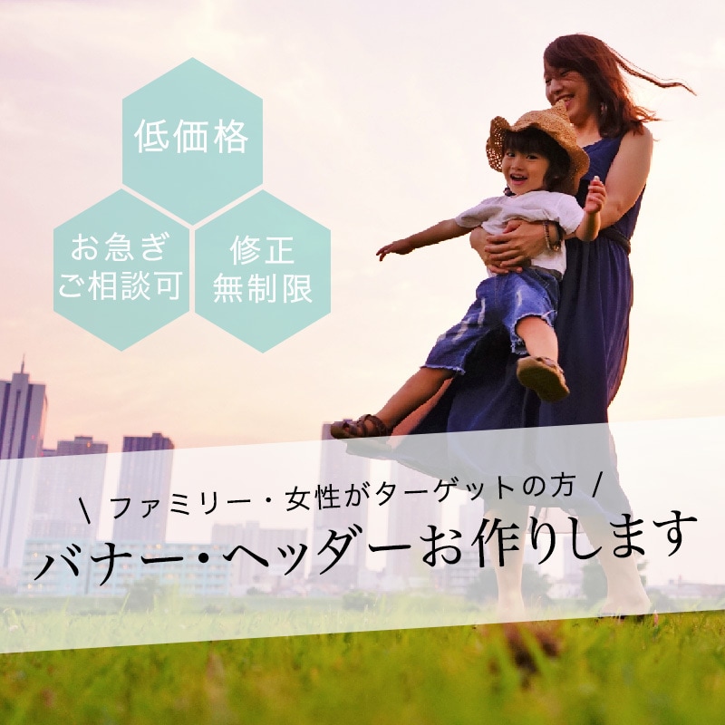 シンプルに伝える!バナー・ヘッターお作りします 駆け出しママデザイナーがファミリー・ママ向けにお作りします!ココナラ。