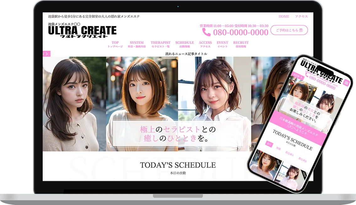 メンズエステ ホームページ制作初期費用無料で業界最安値ウルトラクリエイト。