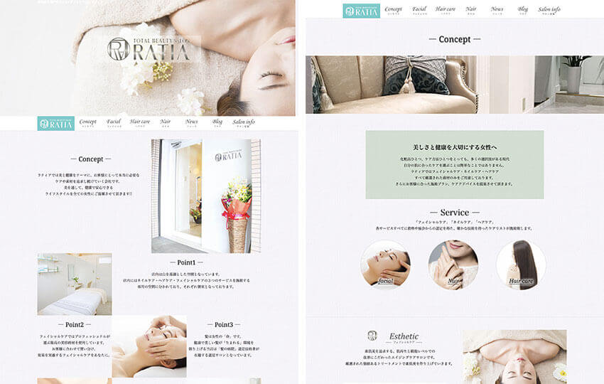 エステサロンRatiaHP制作実績名古屋でホームページ制作・WEB制作は株式会社ZoDDo。