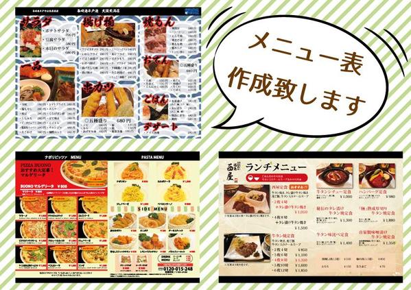 飲食店向けメニュー作成承ります 格安でプロ級のデザインをご提供!ココナラ。
