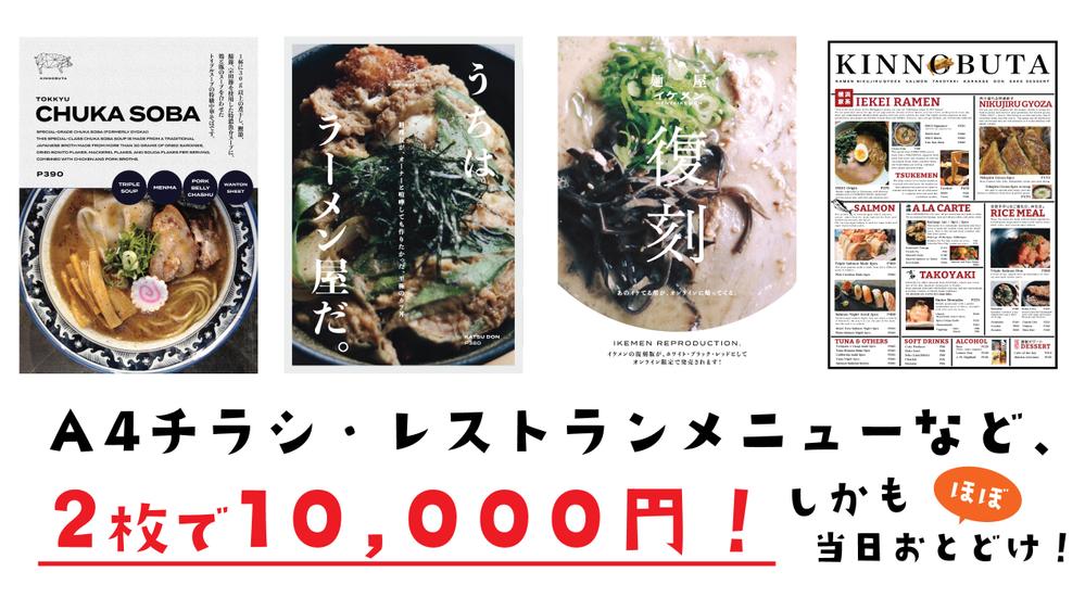 チラシ・飲食店のメニュー作成 A4 2枚 1万円!難しい事はダメでも激安で承りますチラシ・フライヤーデザインの外注・代行ランサーズ。