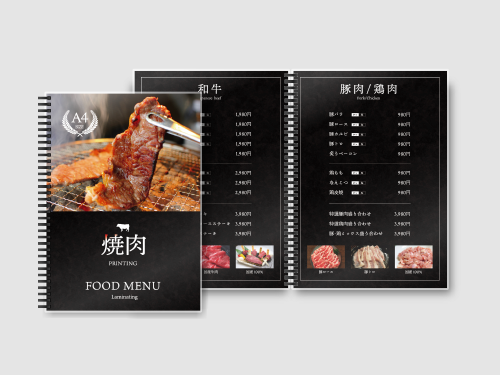 飲食店メニュー表 焼肉・野菜 制作事例パンフレット・カタログのデザイン制作 ウララツールナビ。