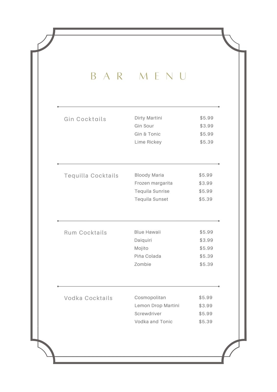 バーメニューテンプレート・パブ・居酒屋メニュー表テンプレートでおしゃれなメニュー表デザインを無料で作成! Canva。