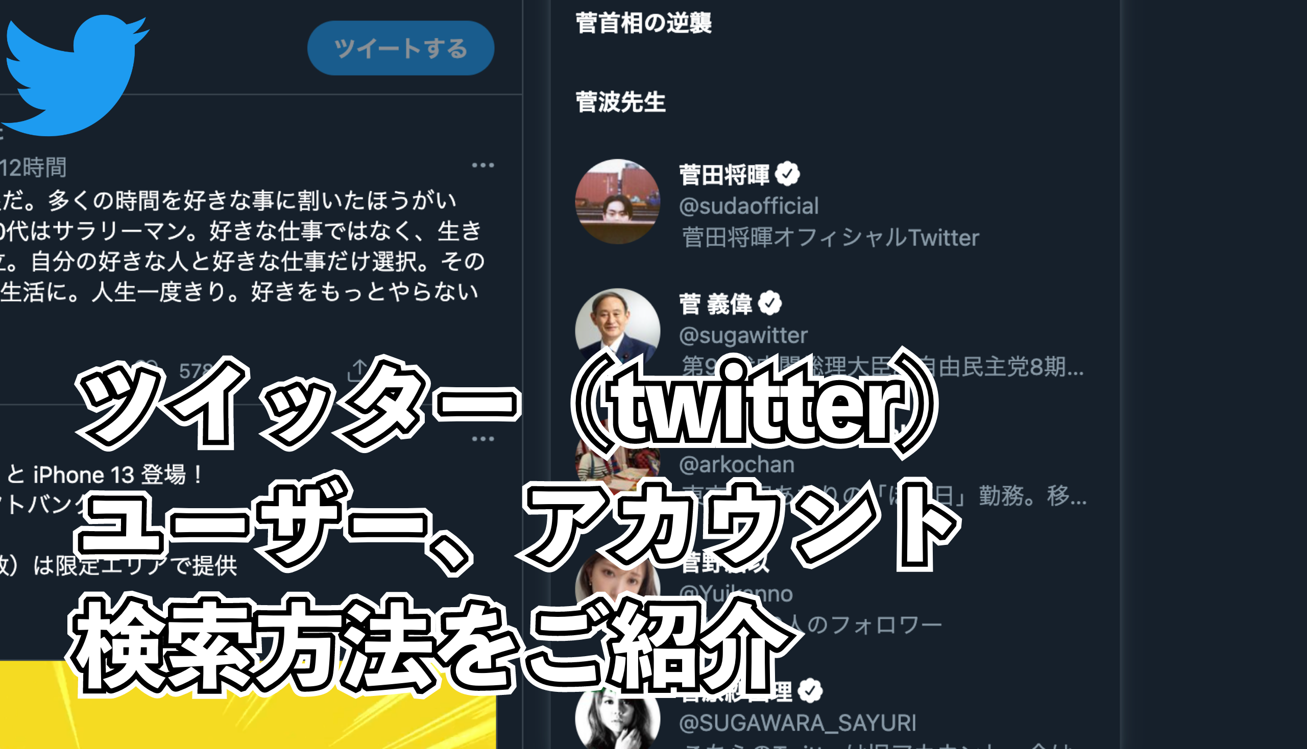 ツイッター twitter のユーザー、アカウントの検索方法の紹介。
