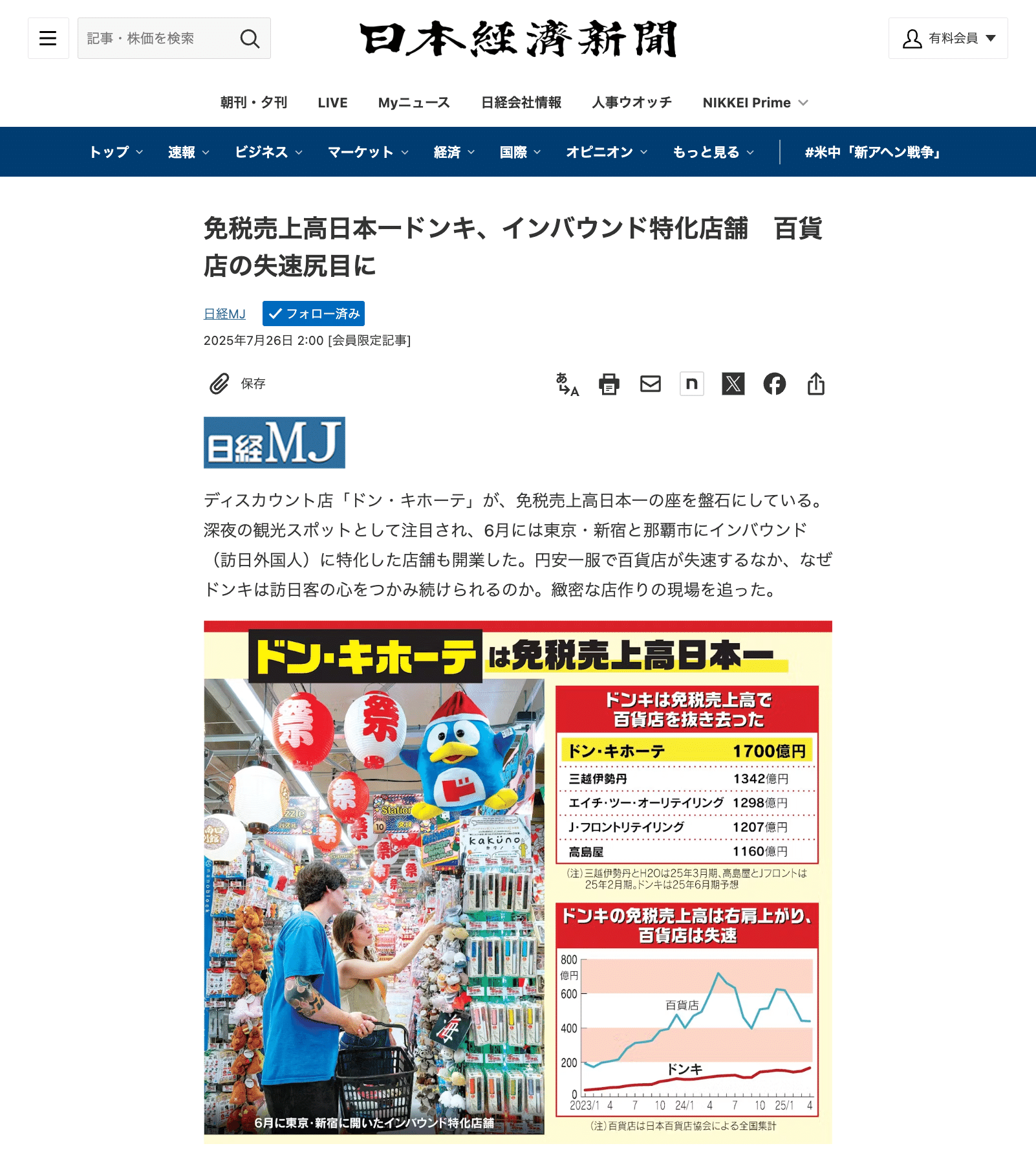 免税売上高日本一のドン・キホーテ、インバウンド特化店舗 百貨店の失速尻目に - 日本経済新聞。