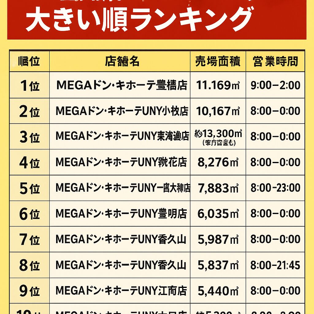 ランキング MEGAドン・キホーテ!大きさランキングBEST15。