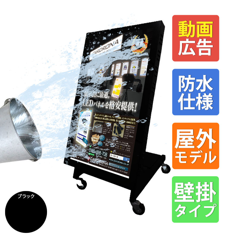 3年保証LEDデジタルサイネージ 32インチ ブラック 屋外対応 低床スタンド。