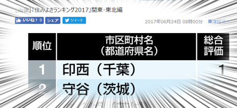 住みよさランキング2019」関東編で千葉県の印西市・成田市がTOP20入り千葉de医院開業。