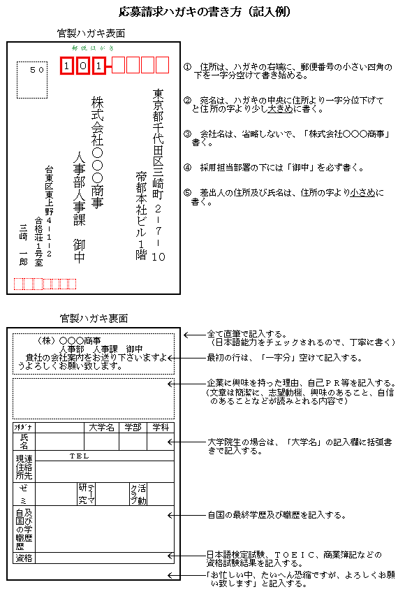 企業への応募はがき 見本東京外国人雇用サービスセンタ。