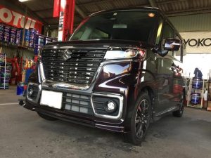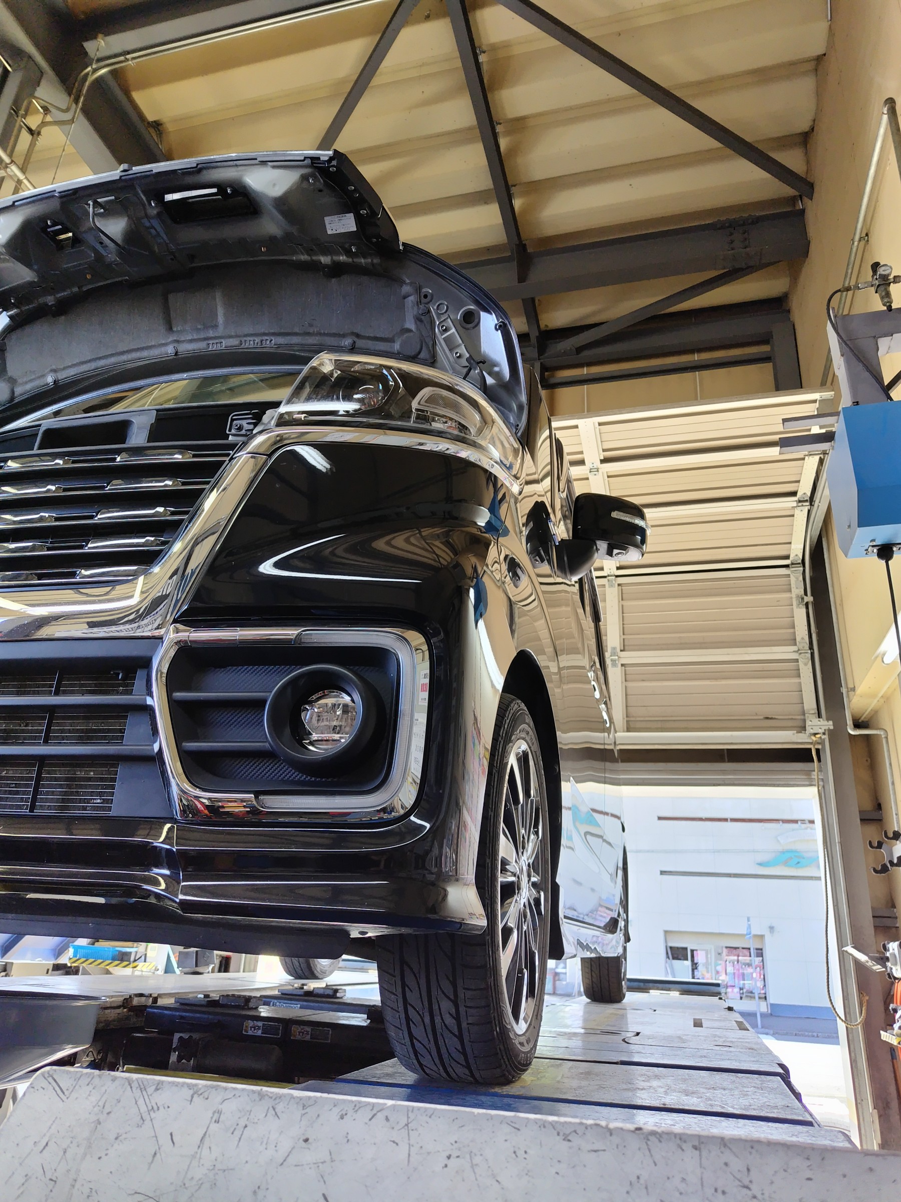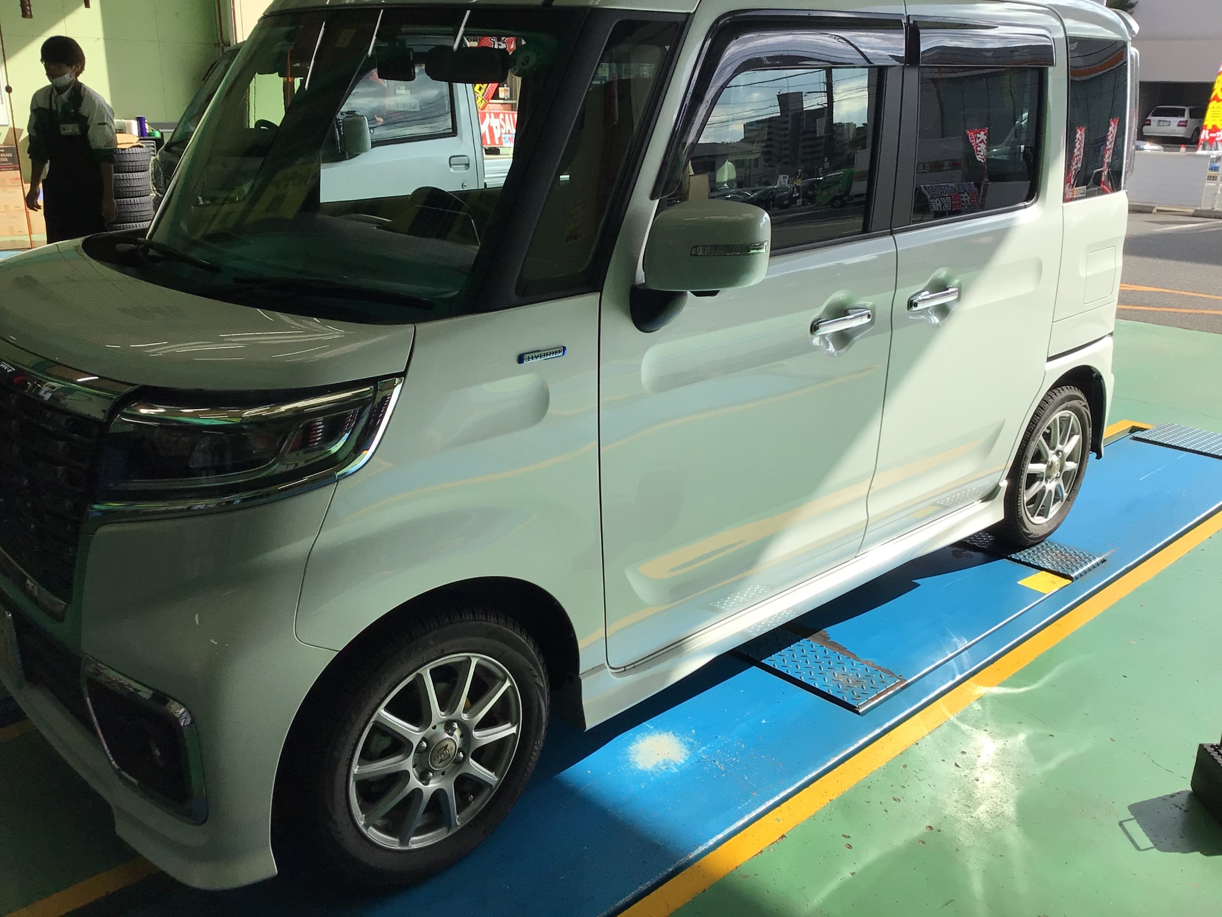 スズキ スペーシアカスタム「車検・タイヤ交換・エンジンオイル交換・ワコーズ スーパーフォアビークルシナジー添加 等」させて頂きました。