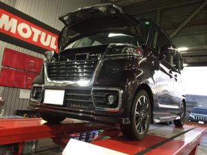 スズキ スペーシアカスタム オイル交換、オイルエレメント交換、ワコーズ アンチエイジングオイル、エンジンパワーシールド 施工 MK53S岡山市東区グーネットピット。