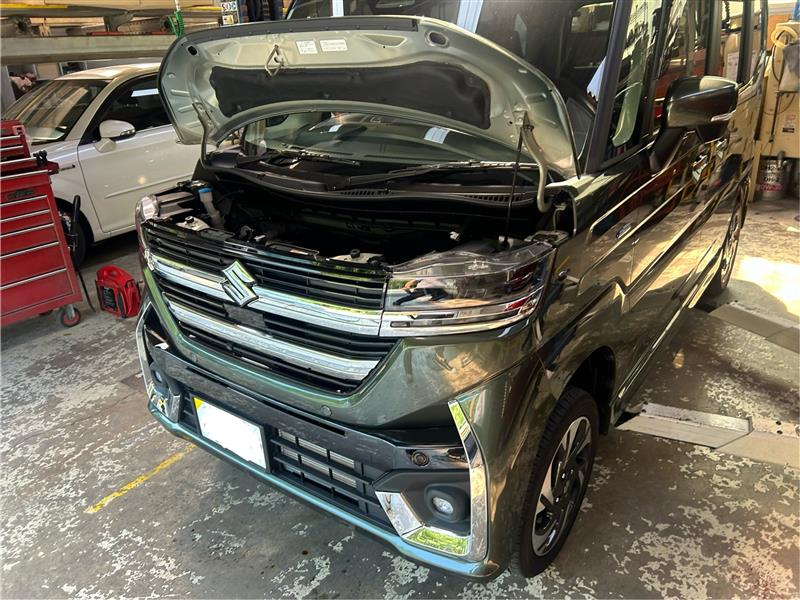 スズキ スペーシアカスタム「法定12ヶ月点検・エンジンオイル交換 等」させて頂きました。