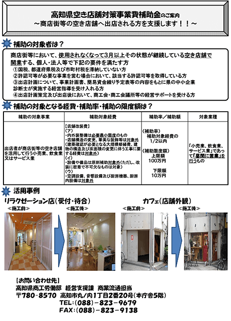 高知県空き店舗対策事業費補助金 空き店舗出店支援事業創業支援制度こうち創業Village。