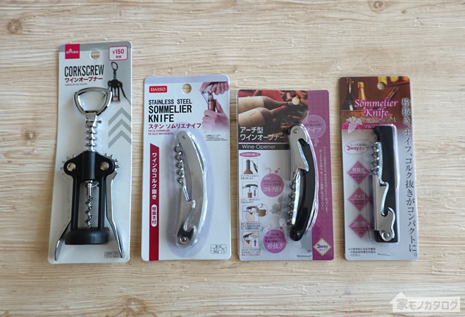 100均のワインオープナー・コルク抜き商品一覧。ダイソーとセリアで100円から ソムリエナイフも。