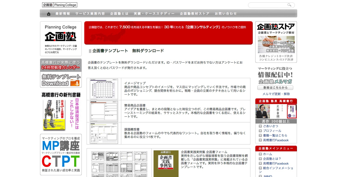 企画書や提案書に活用できるテンプレートがダウンロードできるオススメサイト探究.com。