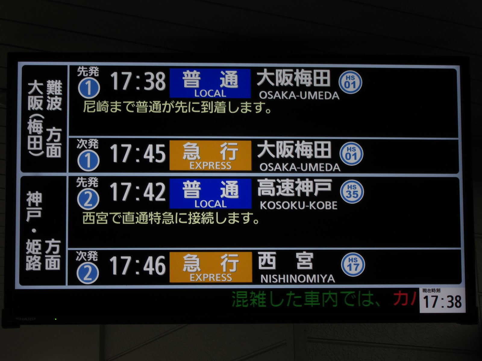 京阪の電光掲示板 - はらこーデイリ。