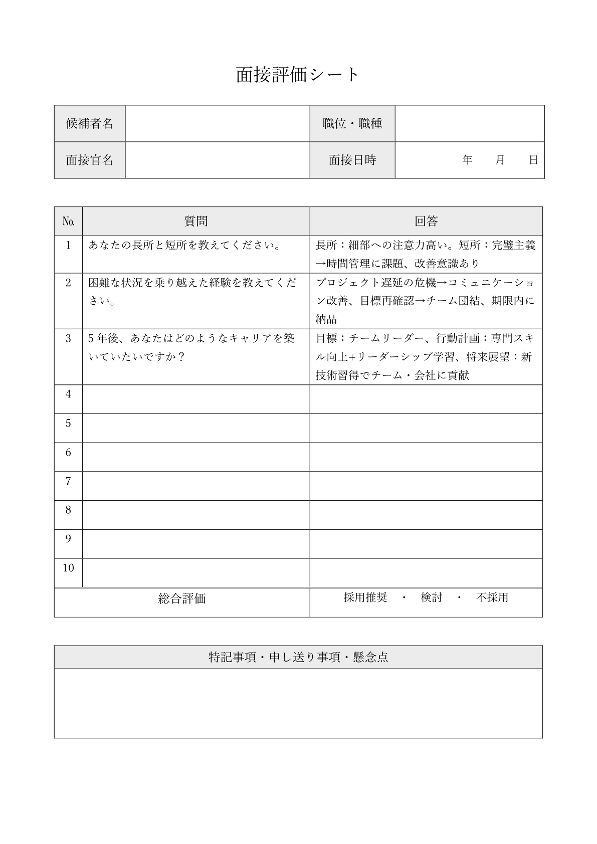 面接評価シートの無料テンプレート集Word, Excel, PDFビズ研。