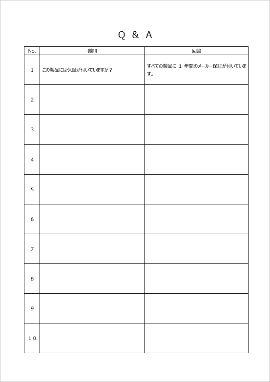 Q&AシートのExcelテンプレート3パターンを無料ダウンロード - フリー雛形。