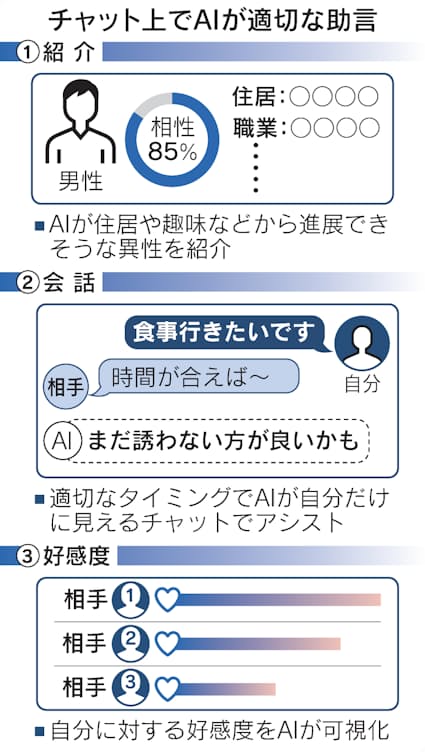 AI搭載マッチングアプリ980社導入、福利厚生メニューに - 日本経済新聞。