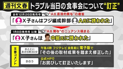 週刊文春の見解は?中居正広氏と女性とのトラブル巡って記事を一部訂正「“フジテレビ社員”A氏に誘われた」⇒「中居氏に誘われた」FNNプライムオンライン。