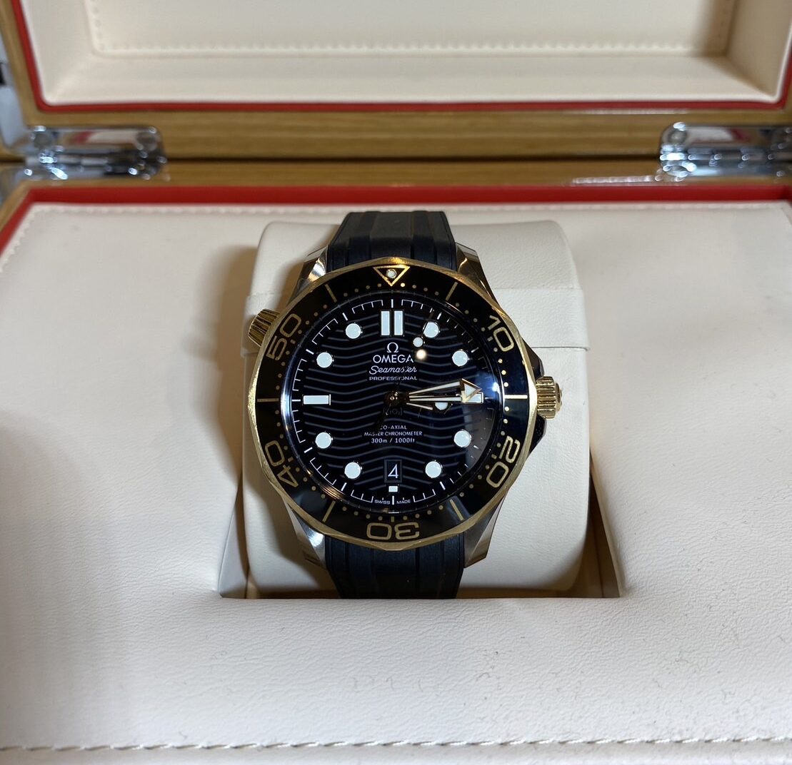 中古品A OMEGA オメガ シーマスター ダイバー300M マスタークロノメーター 42mm 18Kセドナゴールド コンビRef.210.22.42.20.01.002 ノベルティ付き 2023年11月国内正規。