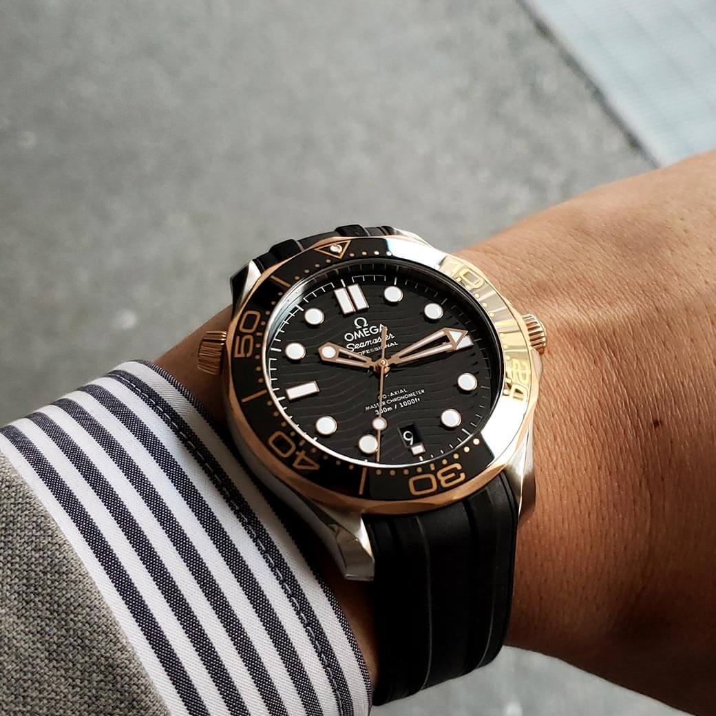 ゴールドの深みに一目惚れ。「オメガ シーマスター ダイバー300M」ご成約!プリベ石川愛媛県 松山・新居浜 で腕時計、婚約指輪、結婚指輪などを取扱う正規時計宝飾専門店 ウォッチ・エンゲージリング・マリッジリング・結納返し。