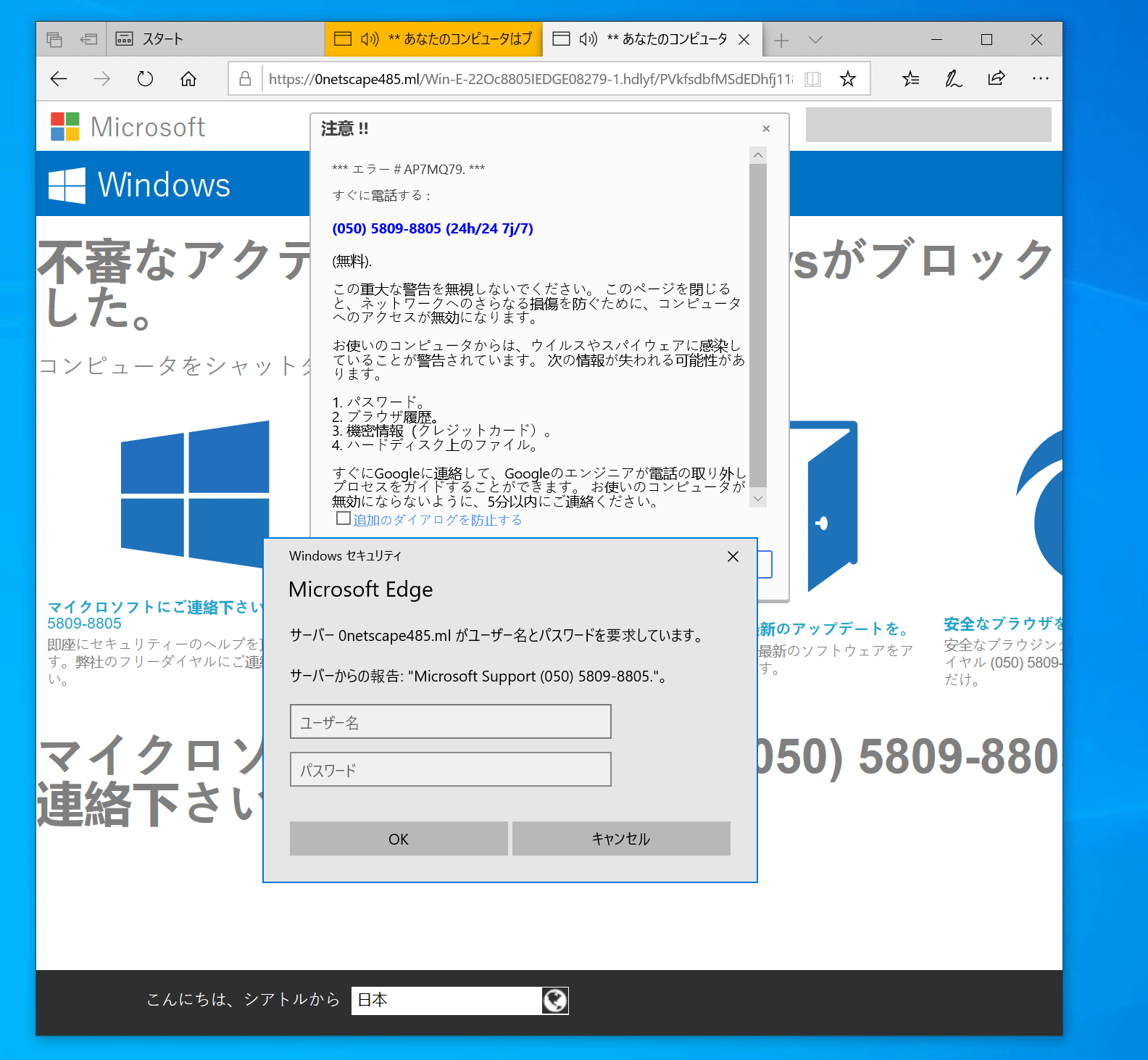 Microsoftをよそおった偽の警告にご注意ください。パソコン教室わかるとできるすみや富士校。
