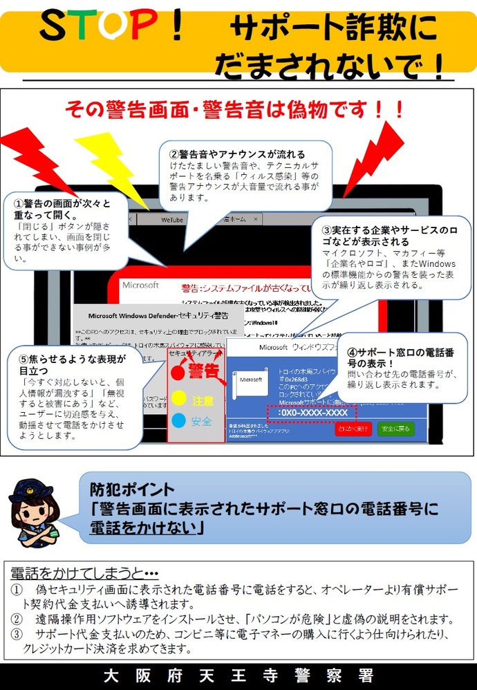 サポート詐欺被害に遭った時の対処方法 大阪府警本部。