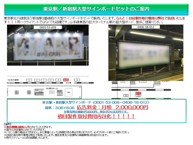 JR 東京駅 & 新宿駅 大型駅看板 セット販売 初回制作取り付け費無料!キャンペーンキャンペーン情報交通広告のサンエイ企画。