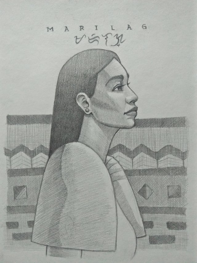 最近この絵を描き終えたんだ。「Marilag」はフィリピン語で「絶世の美女」って意味なんだ。「marilag」の下にある記号は、フィリピンの伝統的な文字で「baybayin」っていうんだよ。 : r drawing。